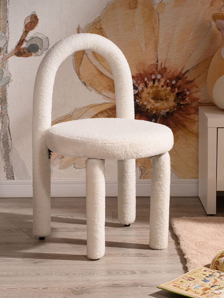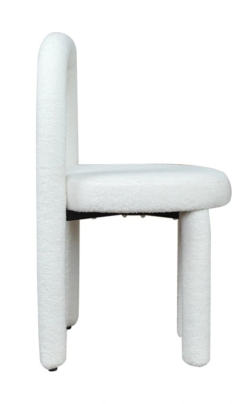 Krzesło Relly to stylowe krzesło, które świetnie sprawdzi się we wnętrzach w stylu skandynawskim. Jego ogromnymi plusami jest pluszowa faktura w kolorze białym oraz zaokrąglone części krzesła, które nadają nietuzinkowości oraz ciekawego designu. Idealnie sprawdzi się we wnętrzach, w których jest potrzeba nadania elegancji oraz potrzeba przykucia oka. Z całą pewnością można go użyć w salonie czy biurze.